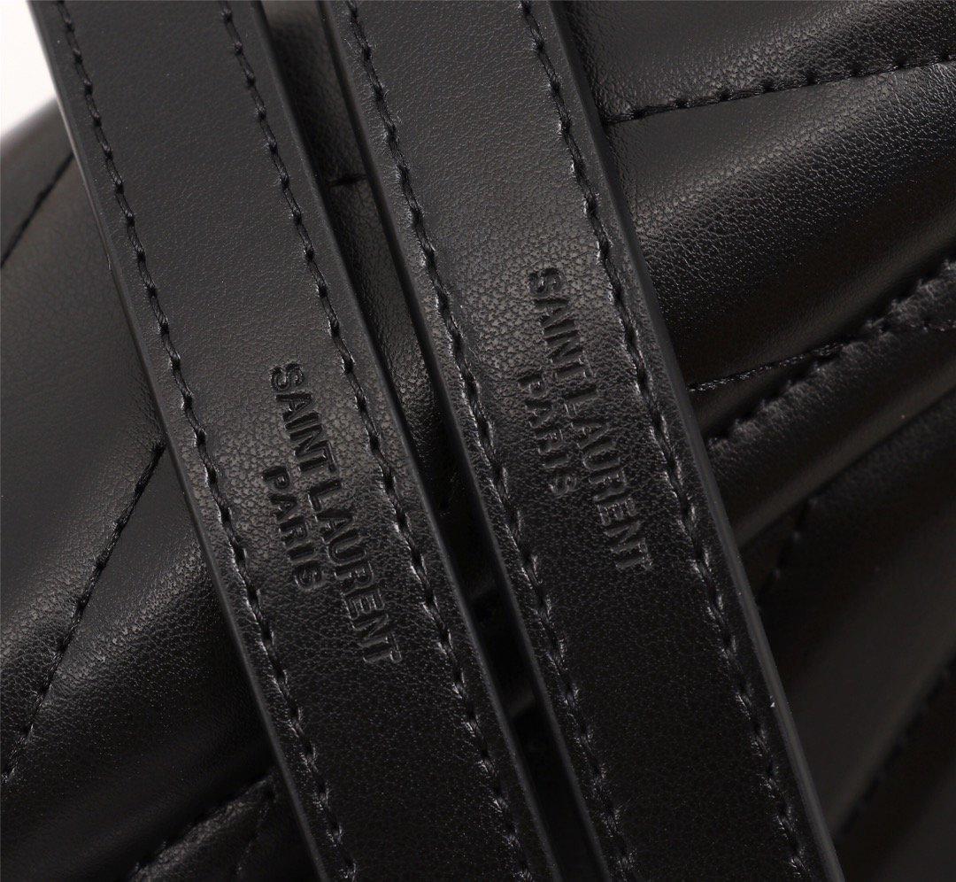 BorsaMonogramSAINTLAURENTcon patta frontale, lievemente strutturata con inizialiYSLintrecciate in metallo, tracolla in pelle e a catena e impunture trapuntate a “Y”.